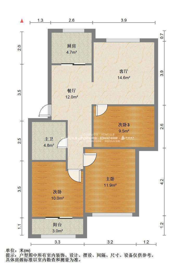 厅室3室2厅1卫1阳台