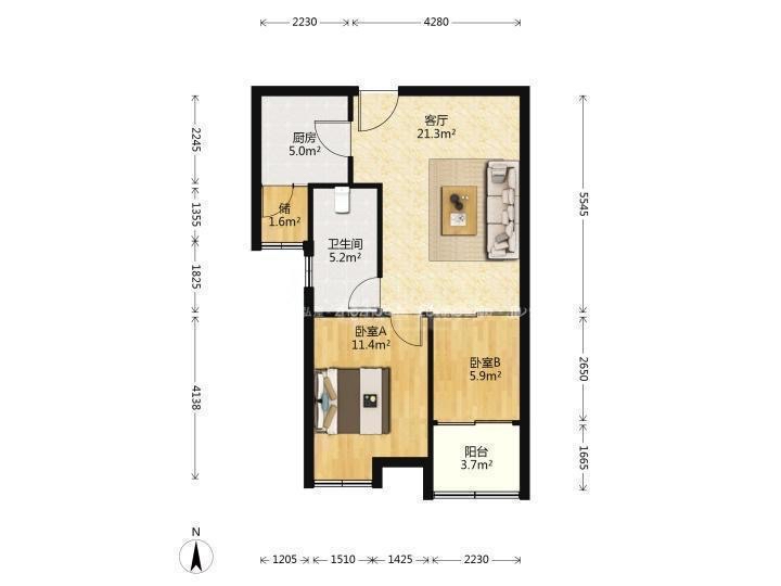 厅室2室2厅1卫1阳台