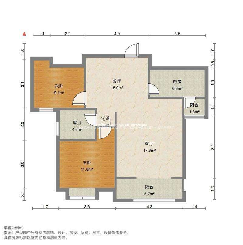 厅室2室2厅1卫1阳台