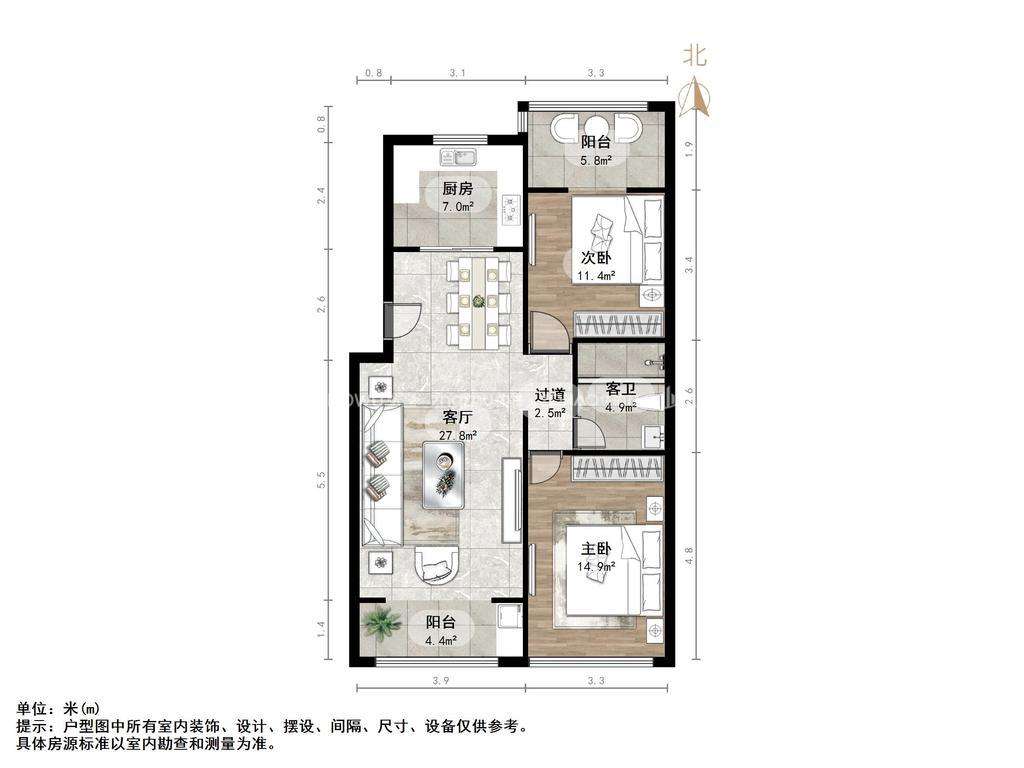 朝向南北 建筑面积106㎡