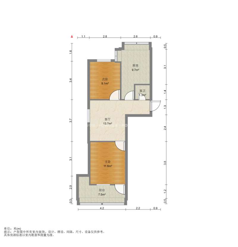 厅室2室1厅1卫1阳台