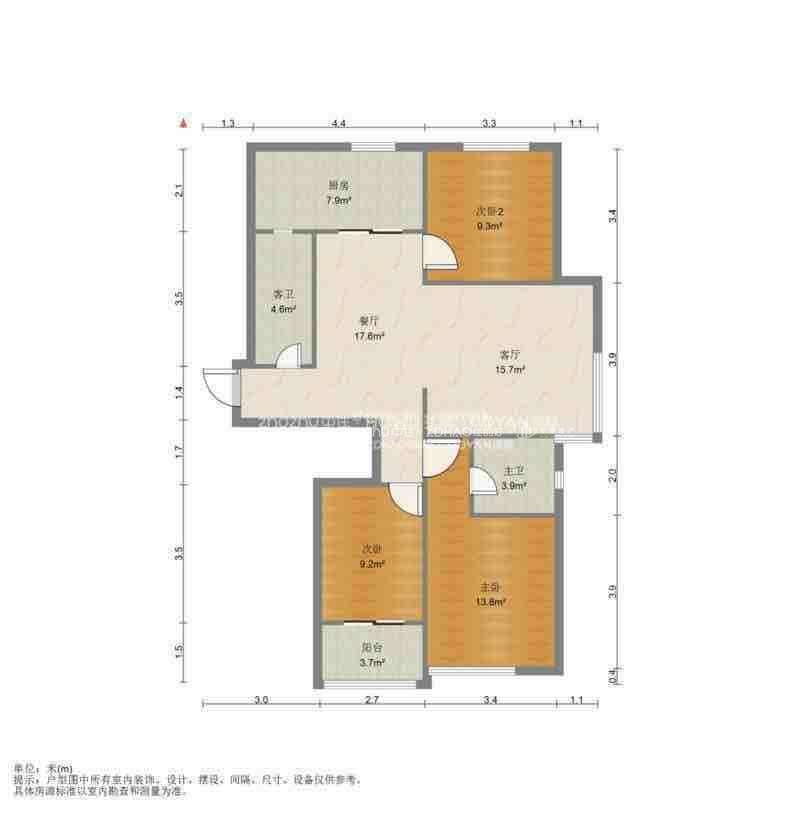 厅室3室2厅2卫1阳台
