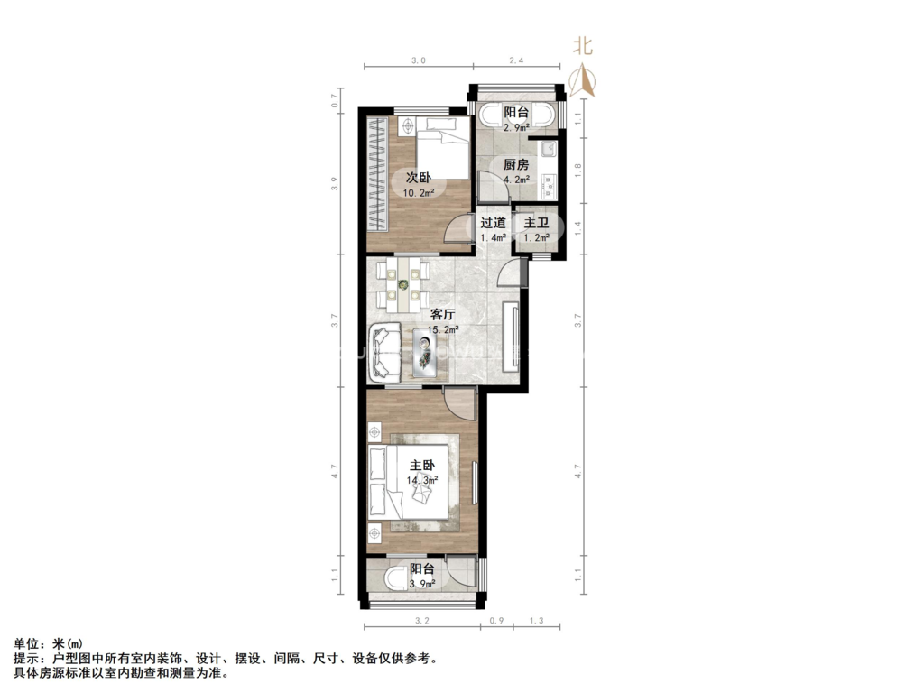 朝向南北 建筑面积68㎡