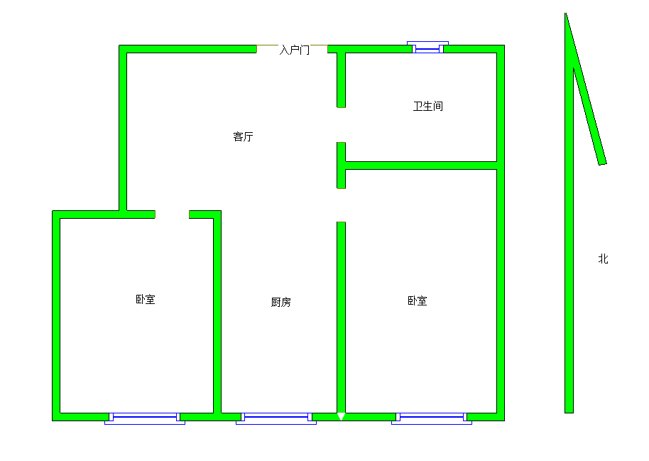 2、户型优势:2室1厅,南北卧室,客厅方正好用,单元对讲门,大院传达,安全性高!