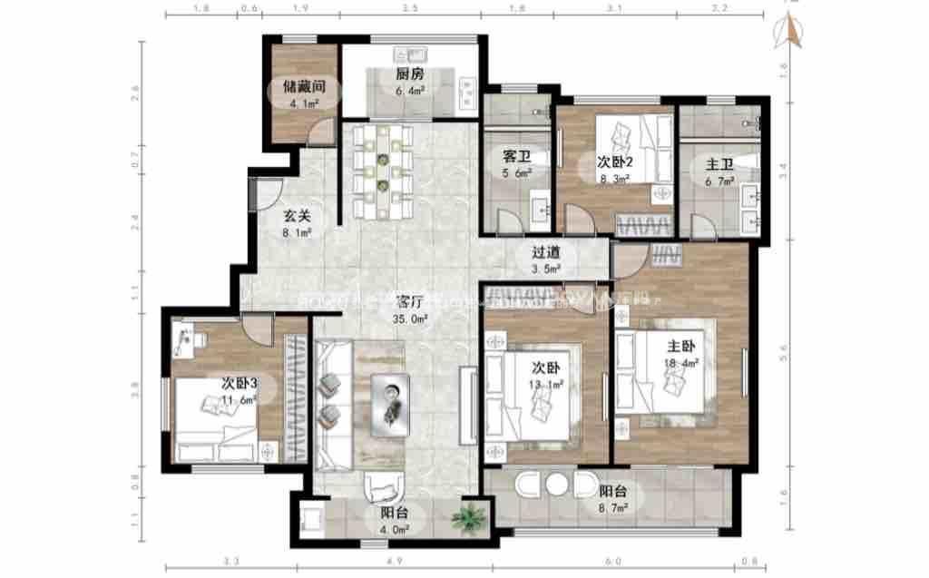 厅室4室2厅2卫2阳台