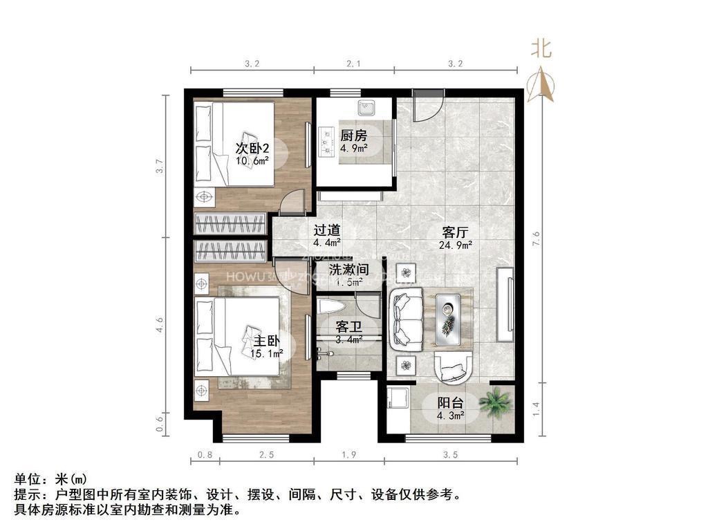 2、户型优势:南北卧室,客厅方正好用,单元对讲门,大院传达,安全性高!