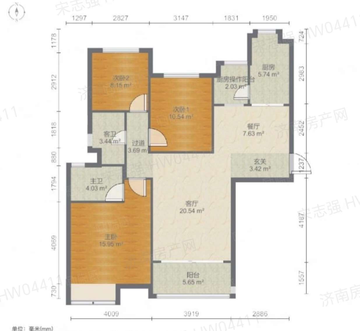 厅室3室2厅2卫1阳台
