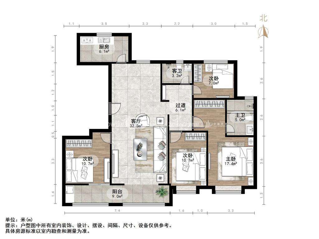 厅室4室2厅2卫1阳台