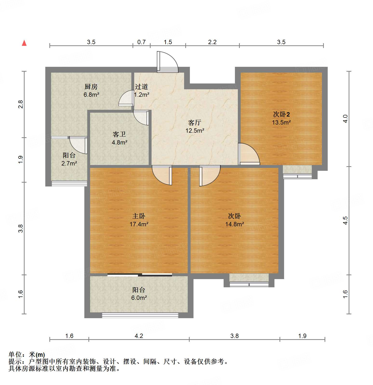 1. 户型:三室两厅一厨一卫,独立卫生间