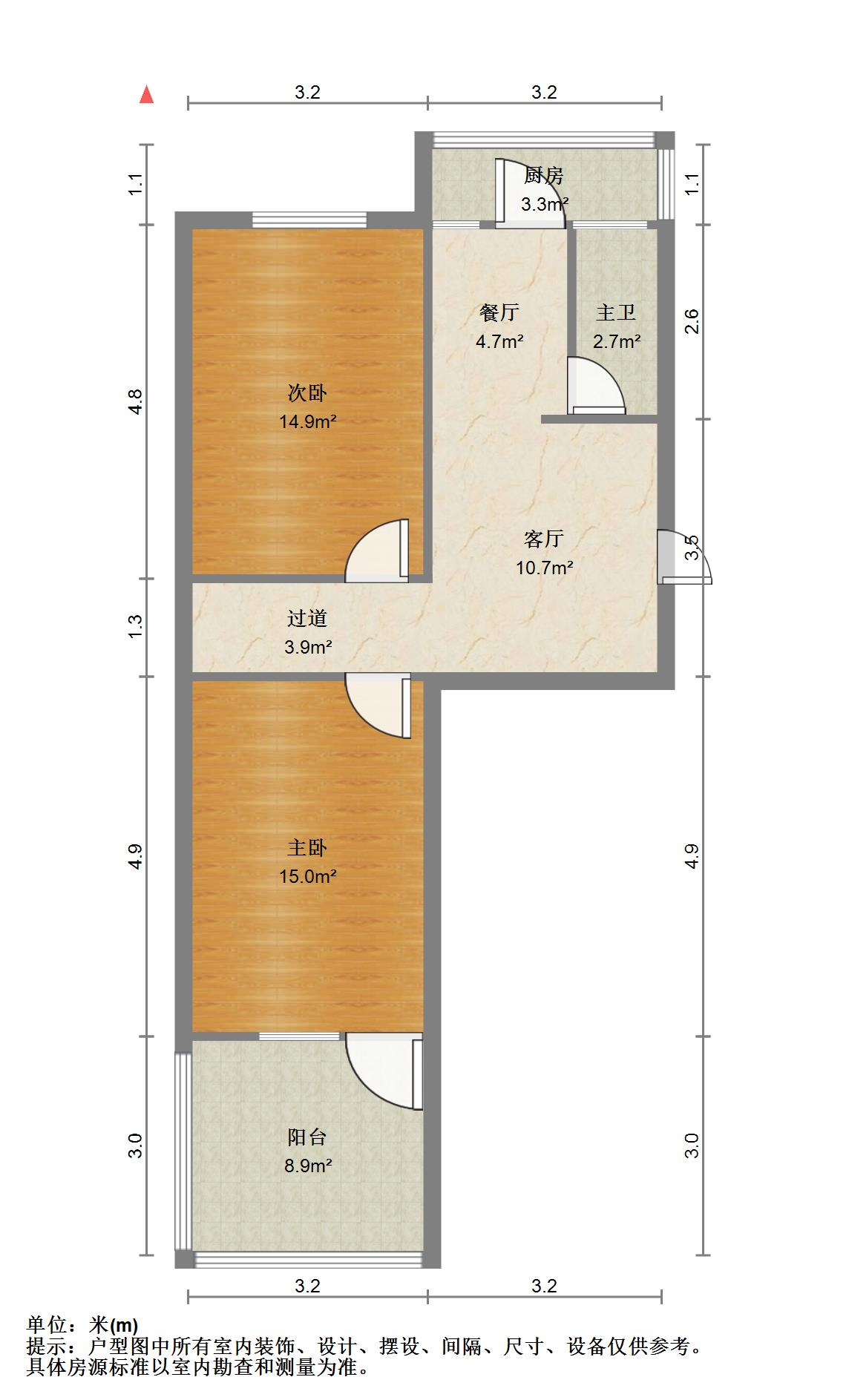 户型介绍:户型方正,南北通透,两室朝阳;布局合理,面积没有浪费;