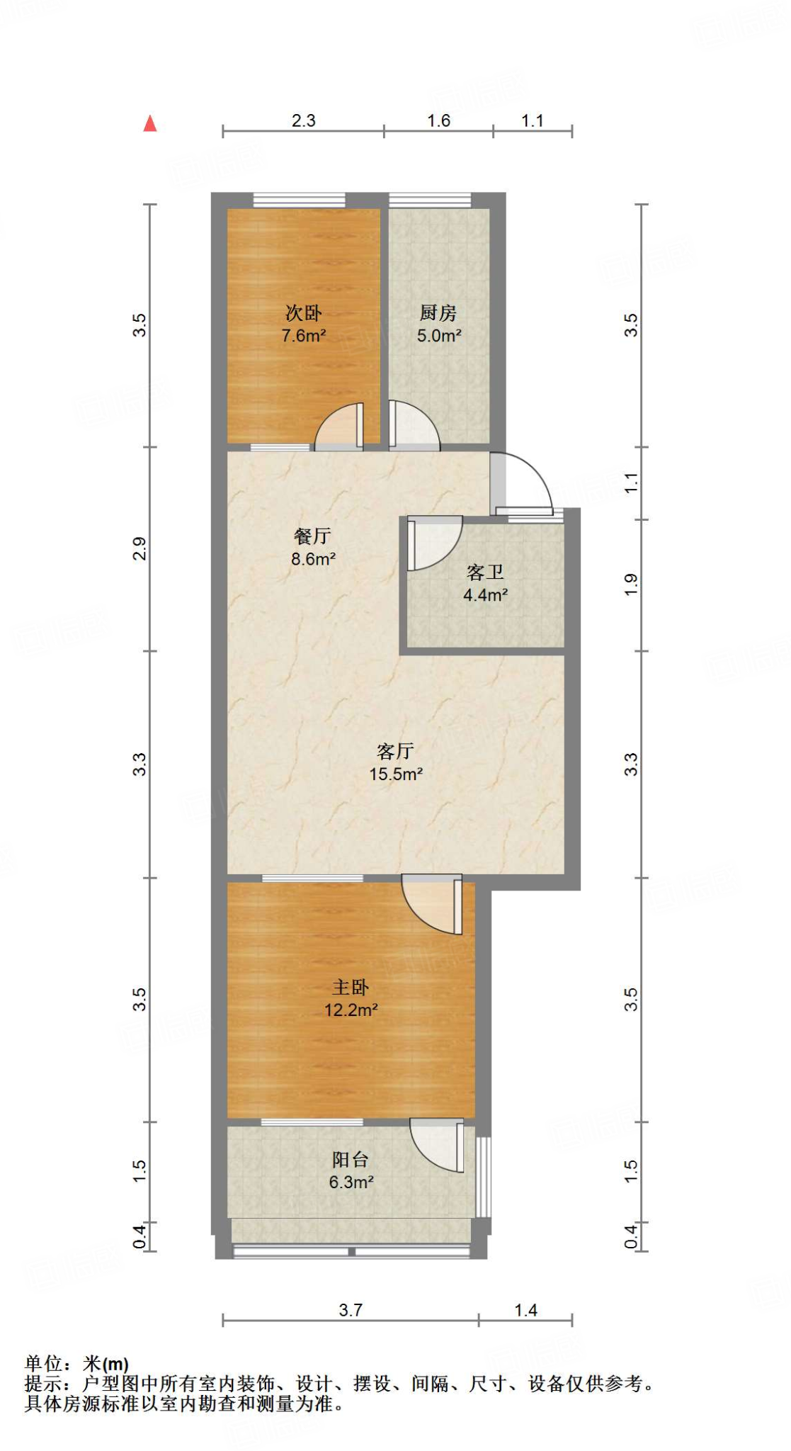 户型介绍:户型方正,南北通透,两室朝阳;布局合理,面积没有浪费;