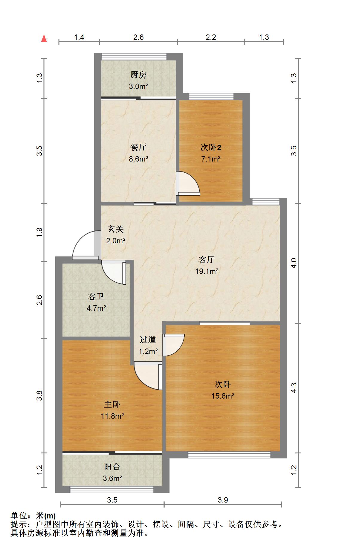 4、两室朝阳,南北通透,采光通风良好;