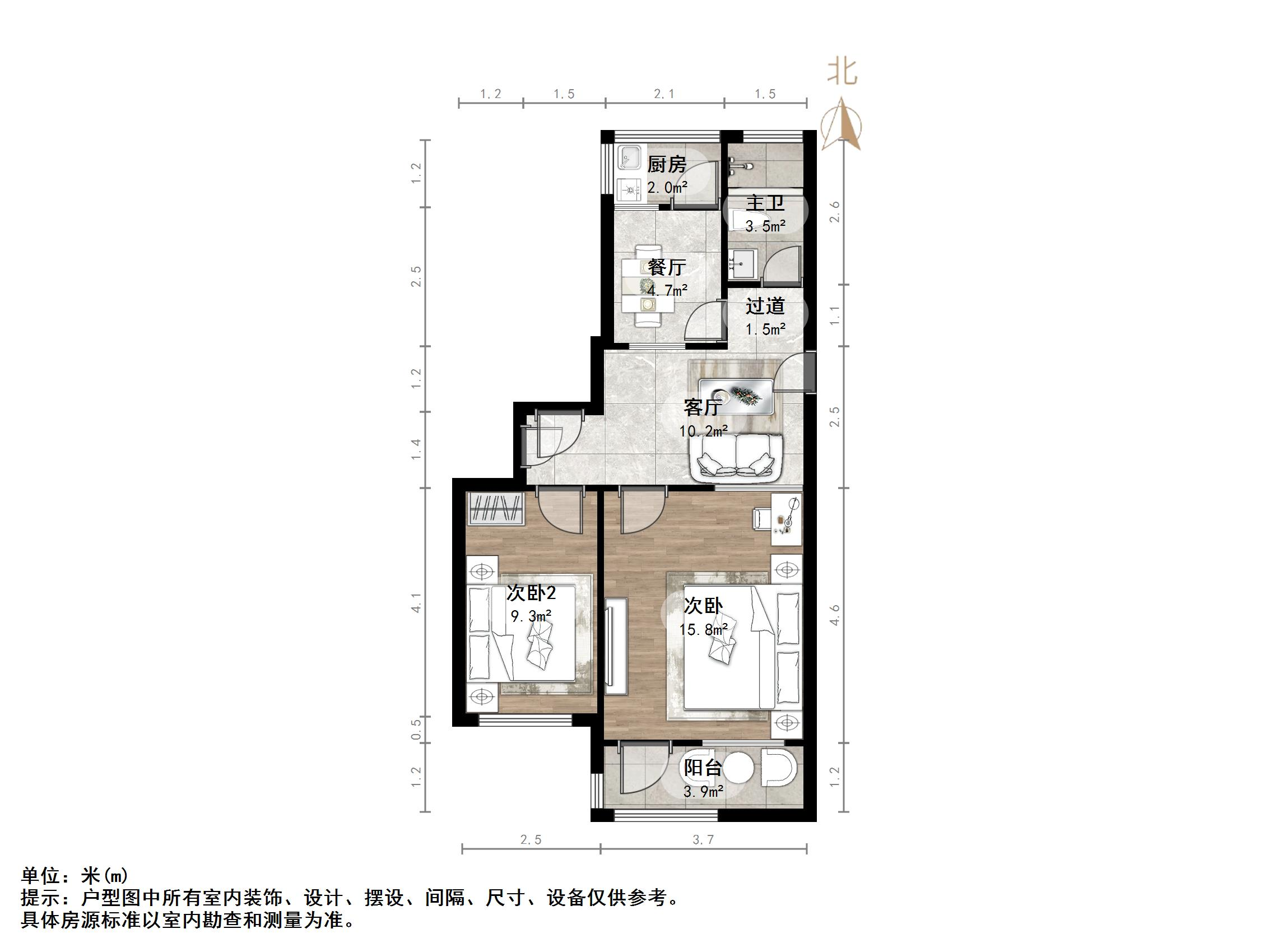 户型介绍:户型方正,南北通透,两室朝阳;布局合理,面积没有浪费;