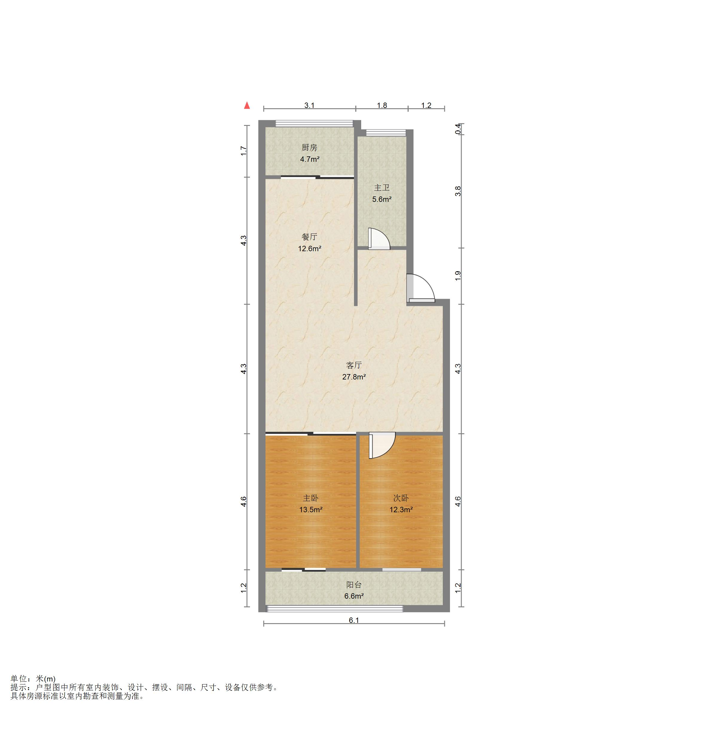 户型介绍:户型方正,南北通透,两室朝阳;布局合理,面积没有浪费;