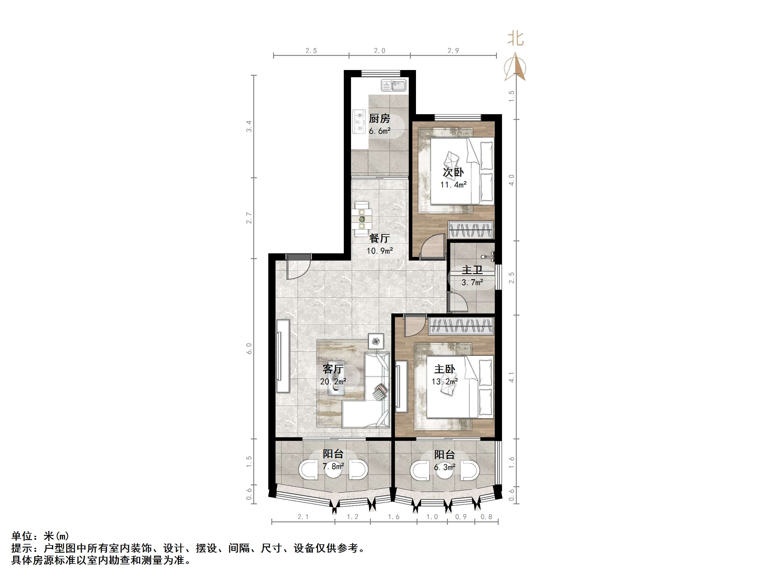 主卧面宽大,带飘窗,采光超棒;