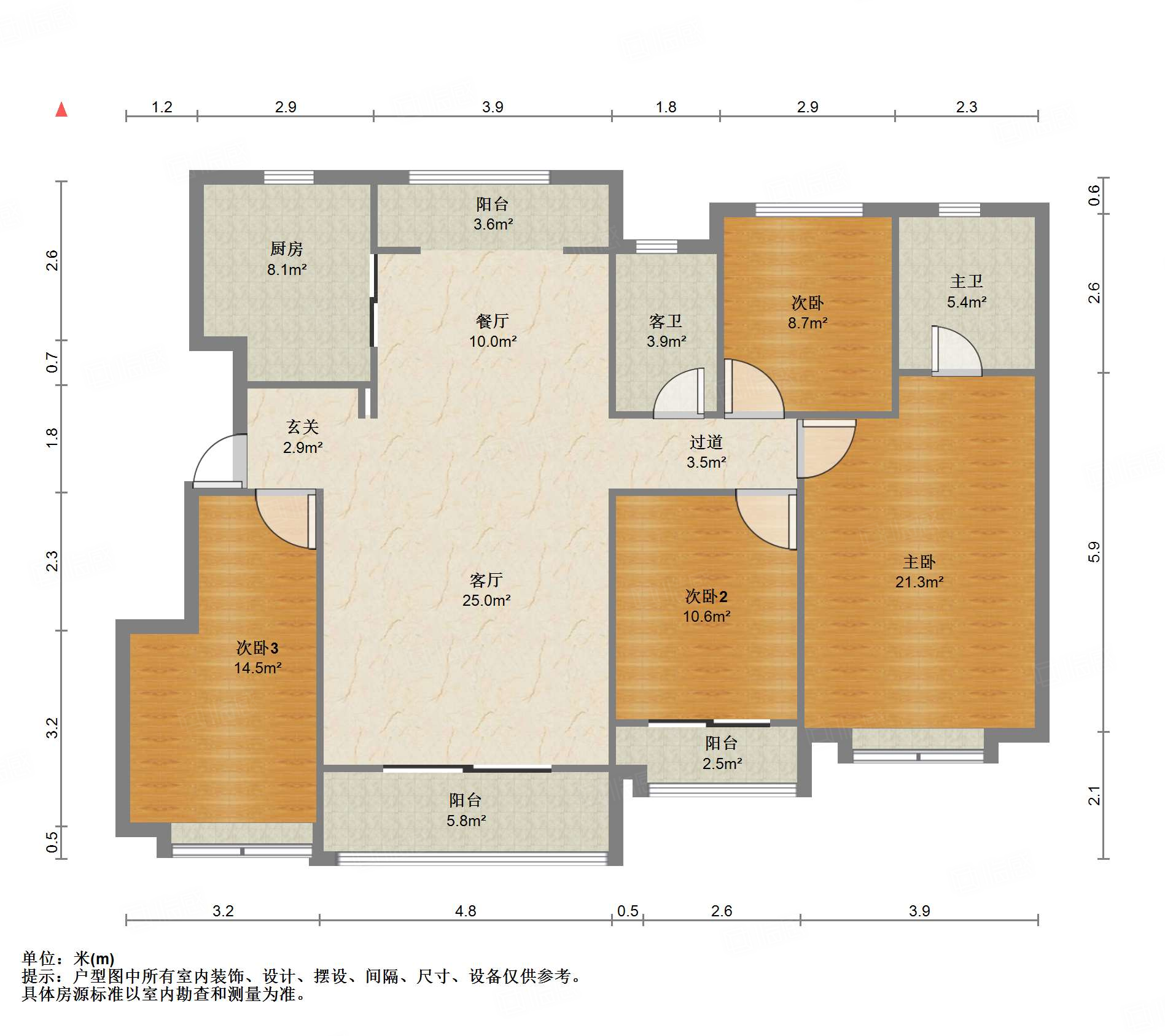 户型方正,南北通透,两室朝阳;布局合理,面积没有浪费;