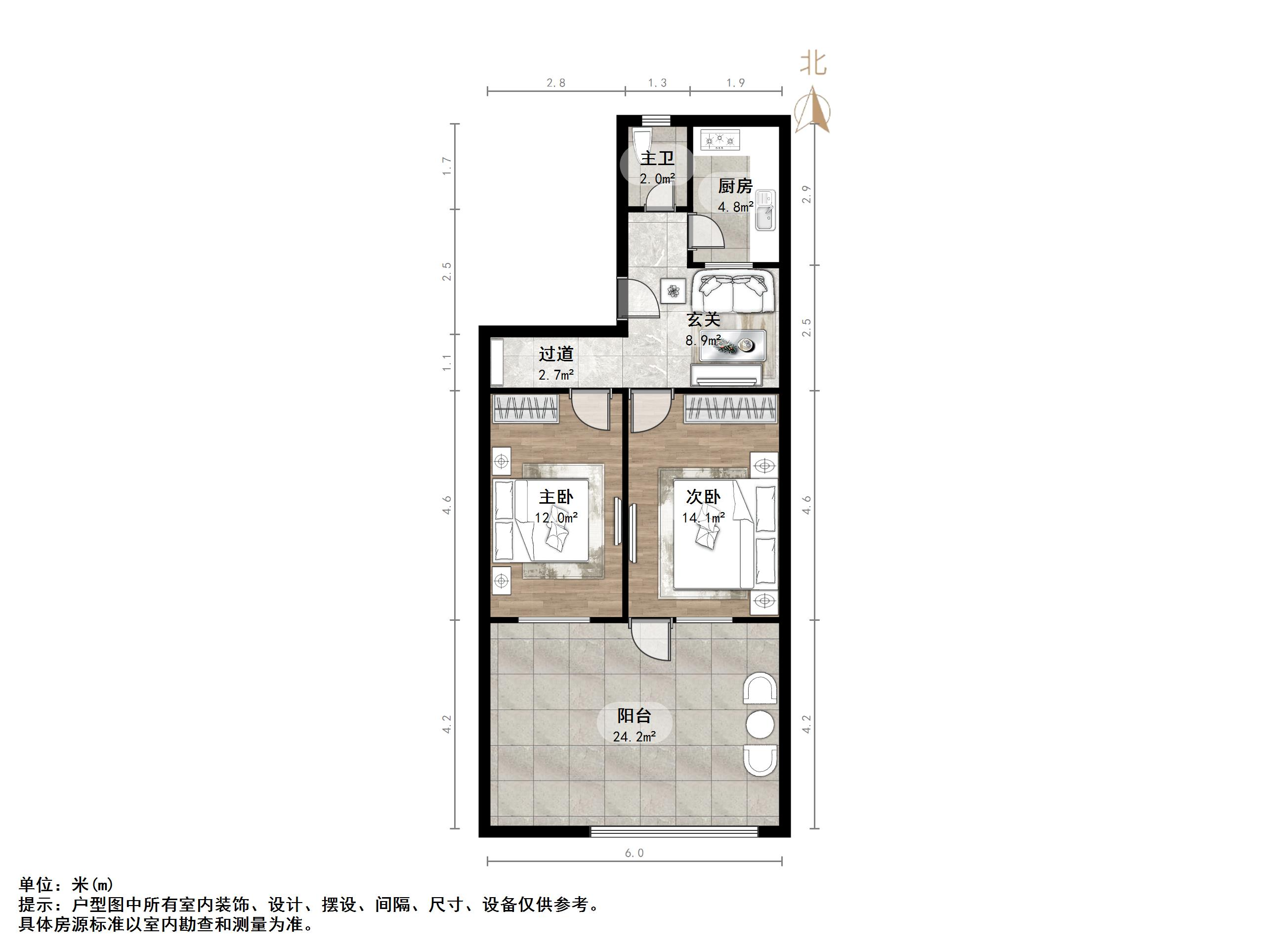 户型介绍:户型方正,南北通透,两室朝阳;布局合理,面积没有浪费;