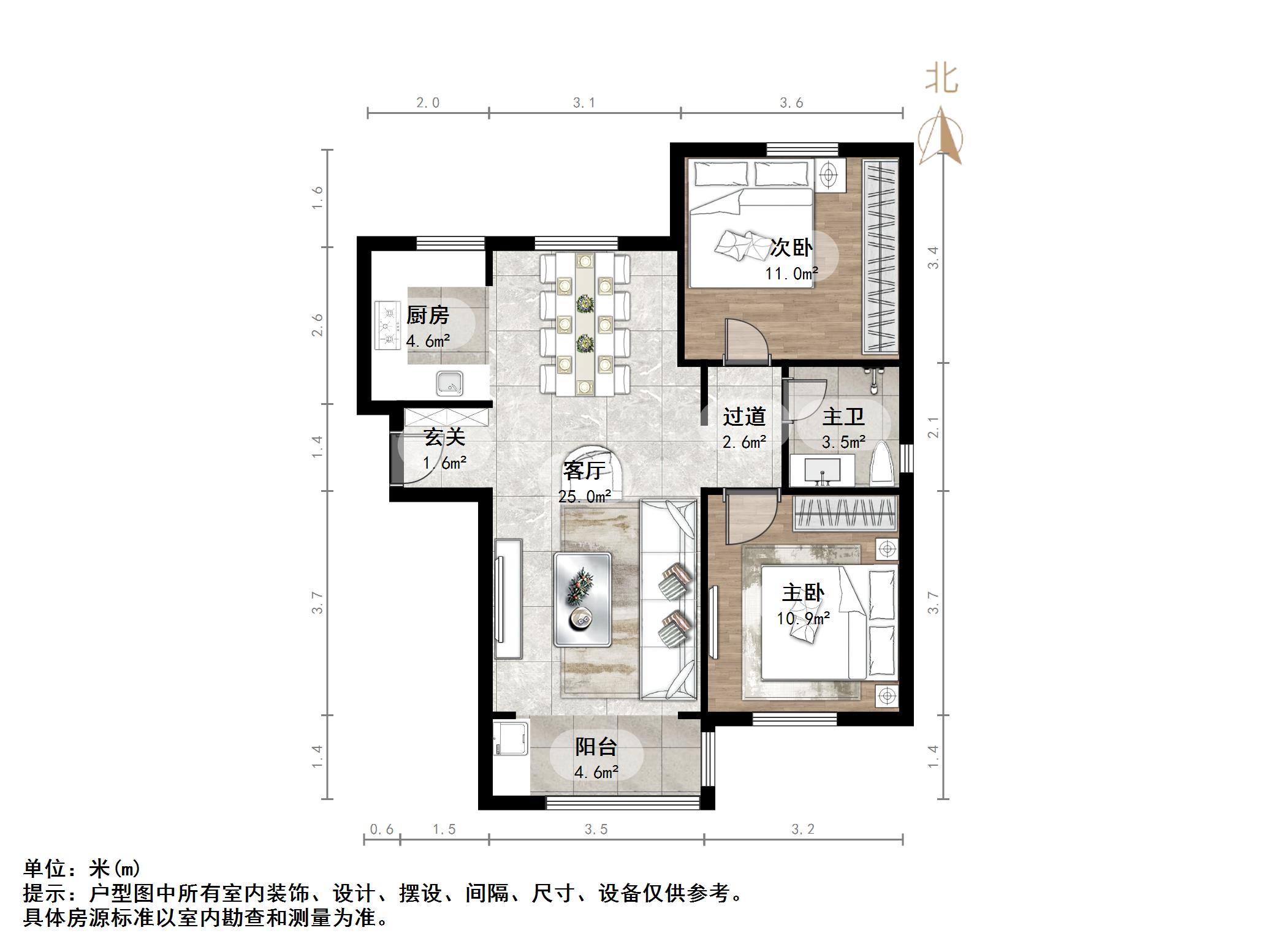 户型介绍:户型方正,南北通透,两室朝阳;布局合理,面积没有浪费;