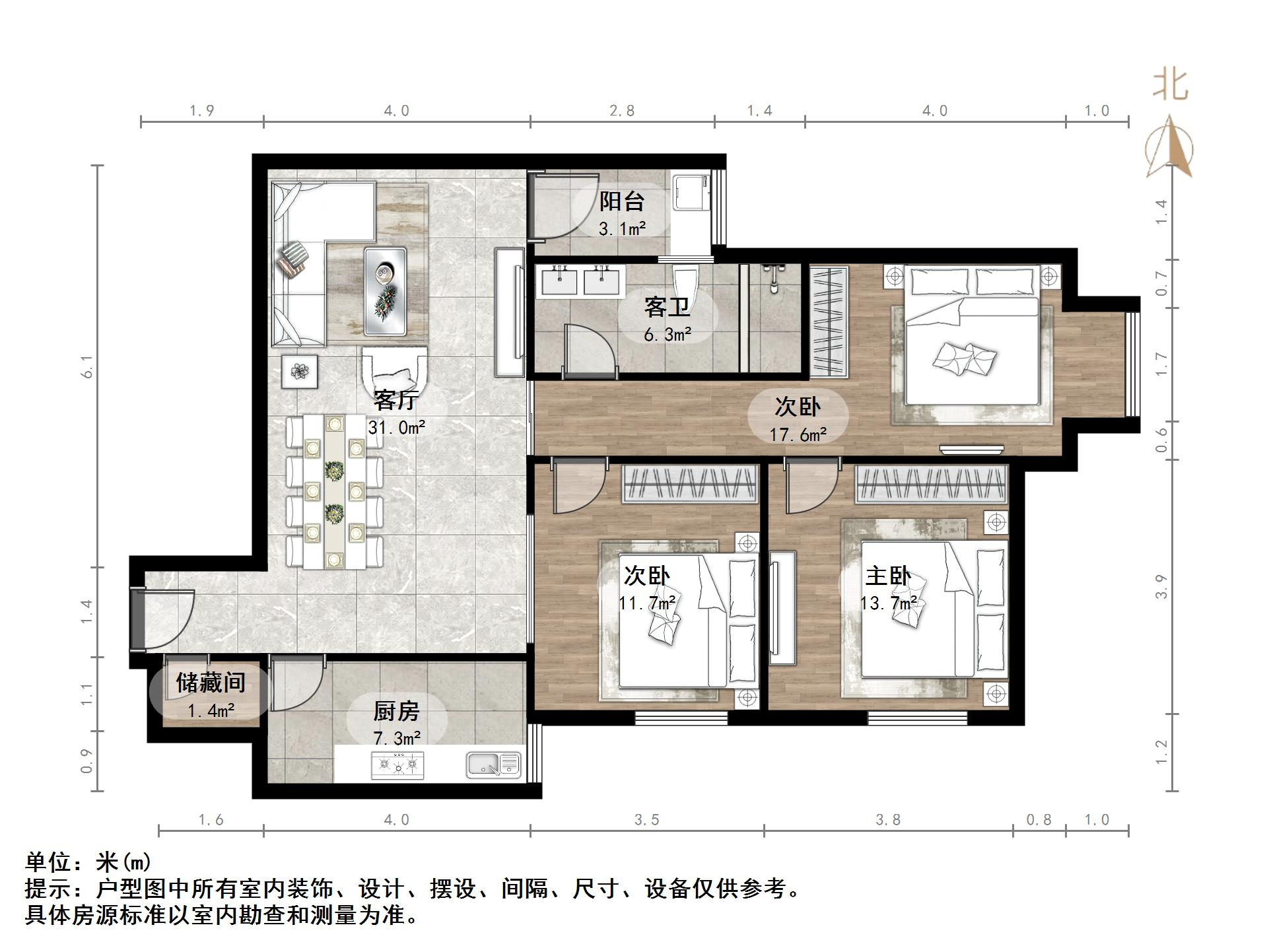 户型介绍:户型方正,南北通透,两室朝阳;布局合理,面积没有浪费;