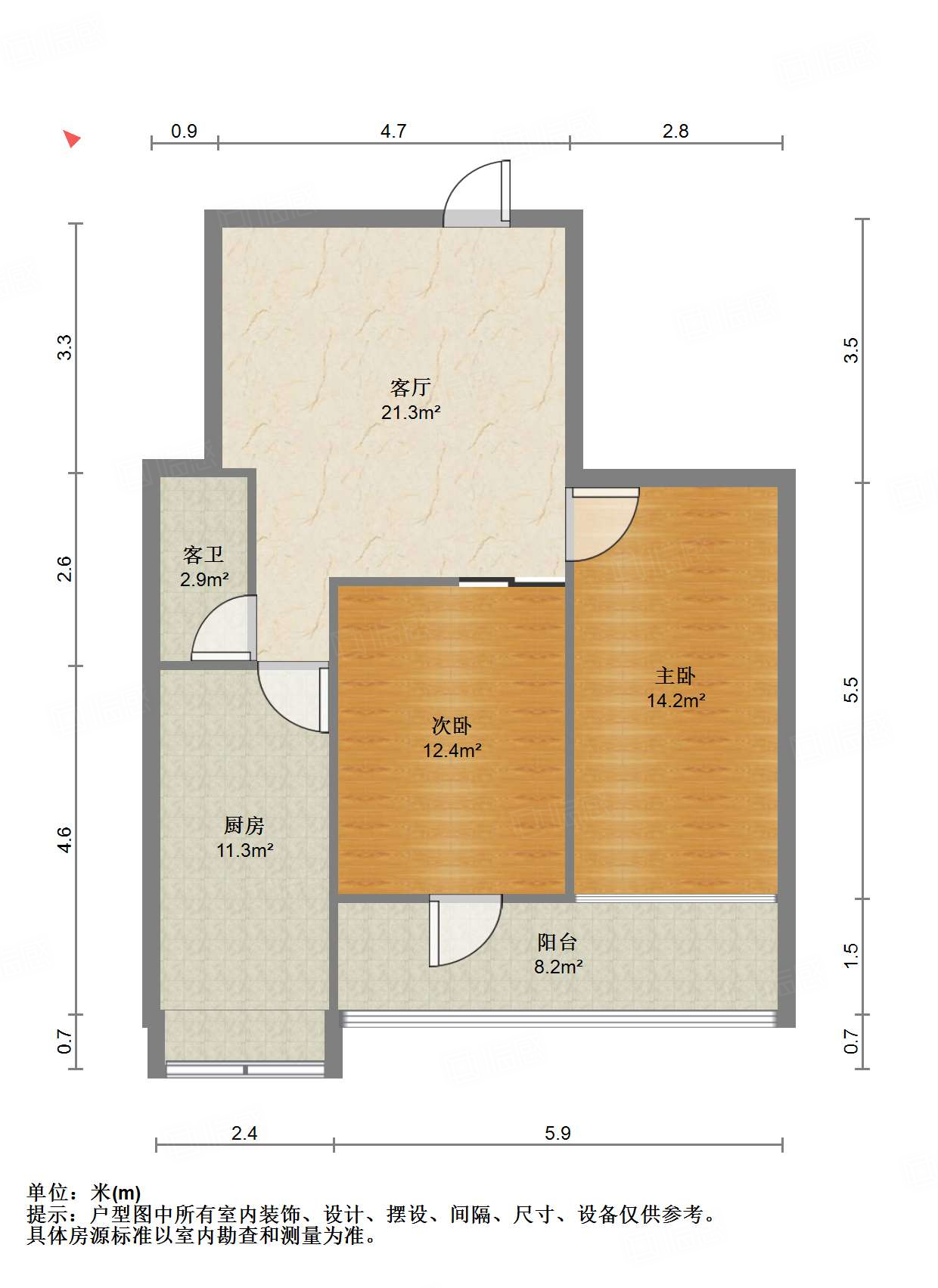 户型介绍:户型方正,南北通透,两室朝阳;布局合理,面积没有浪费;