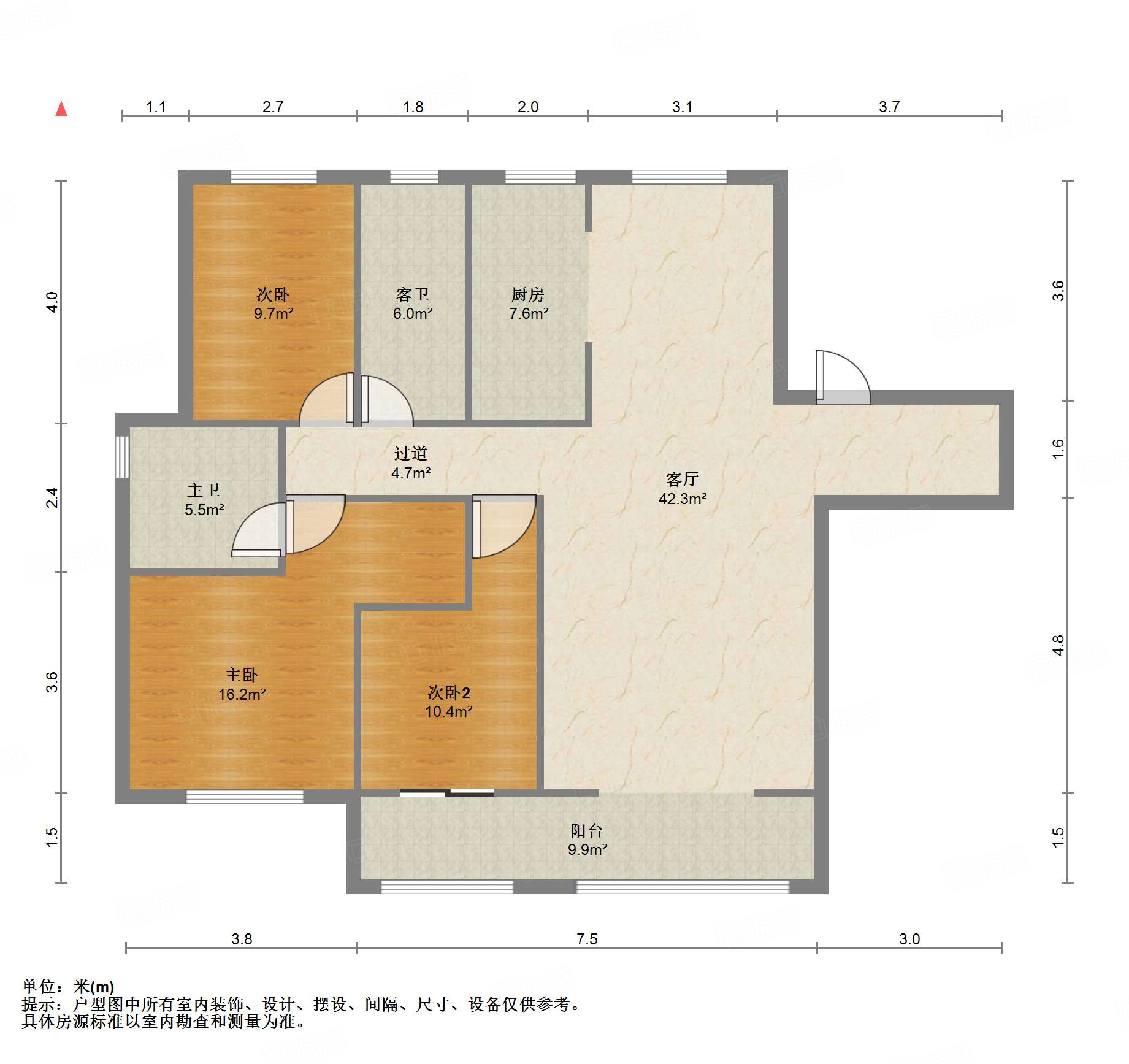 厅室3室2厅2卫1阳台