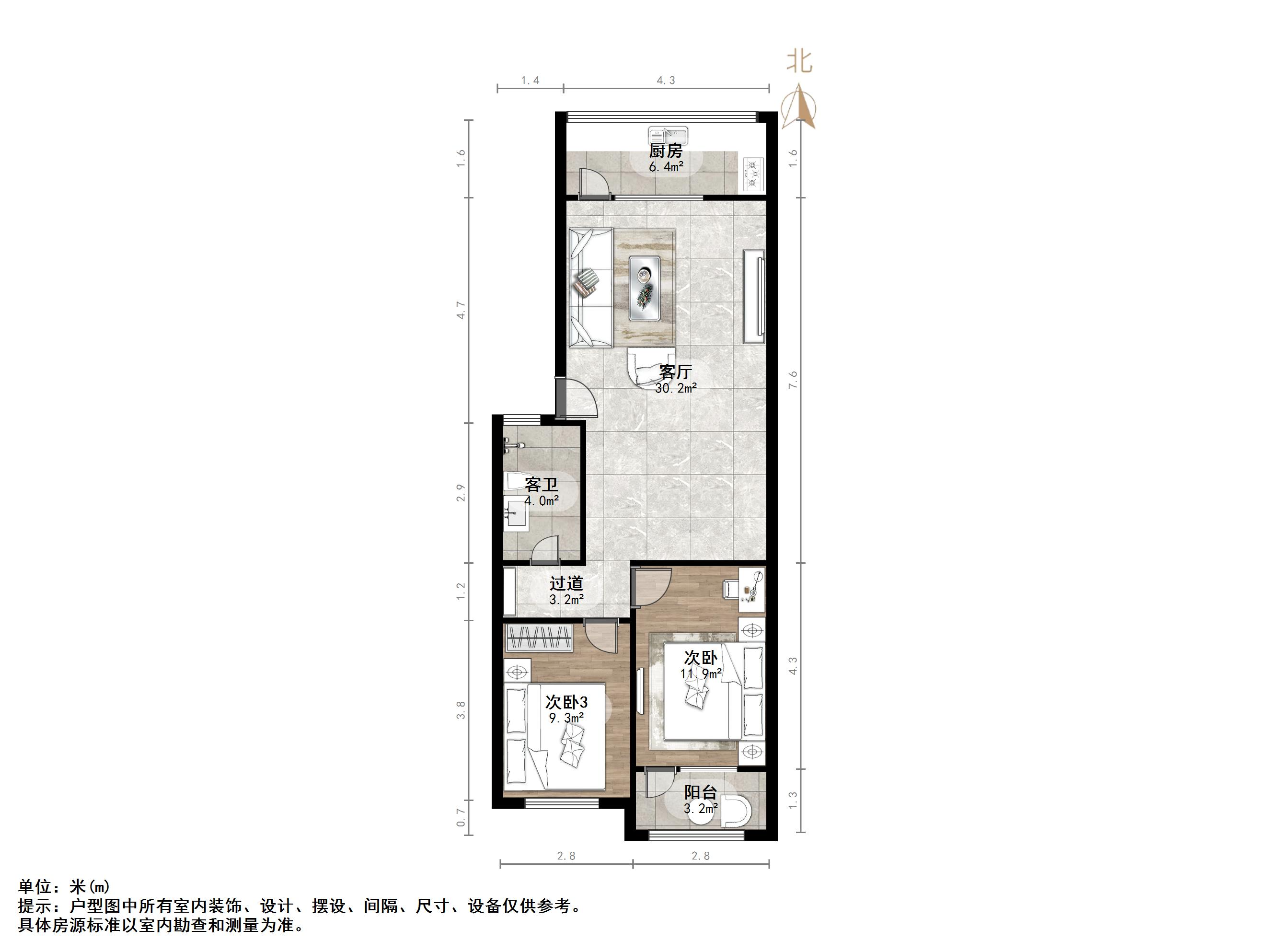 户型介绍:户型方正,南北通透,两室朝阳;布局合理,面积没有浪费;