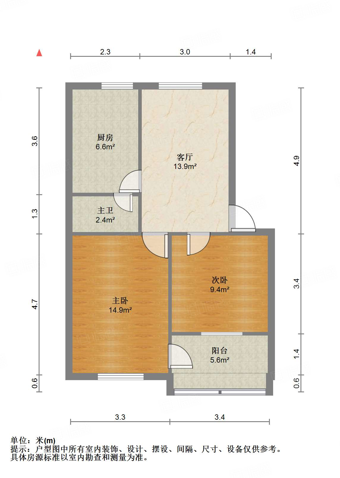 户型介绍:户型方正,南北通透,两室朝阳;布局合理,面积没有浪费;