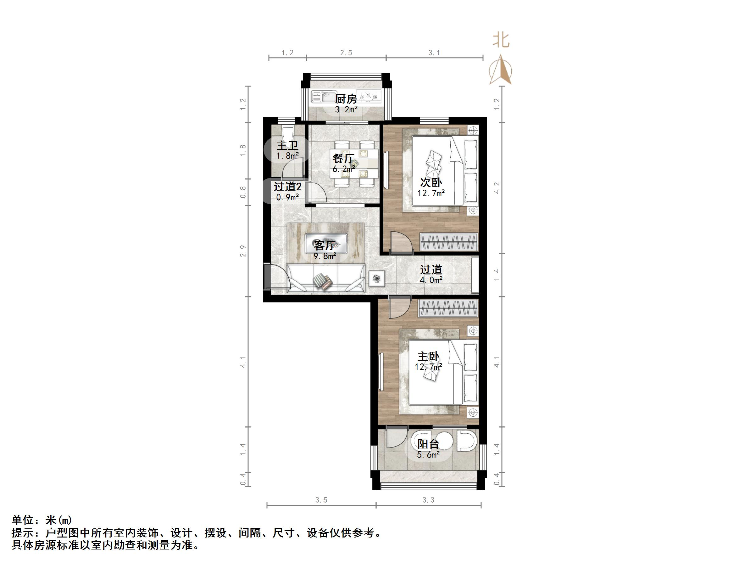 户型介绍:户型方正,南北通透,两室朝阳;布局合理,面积没有浪费;