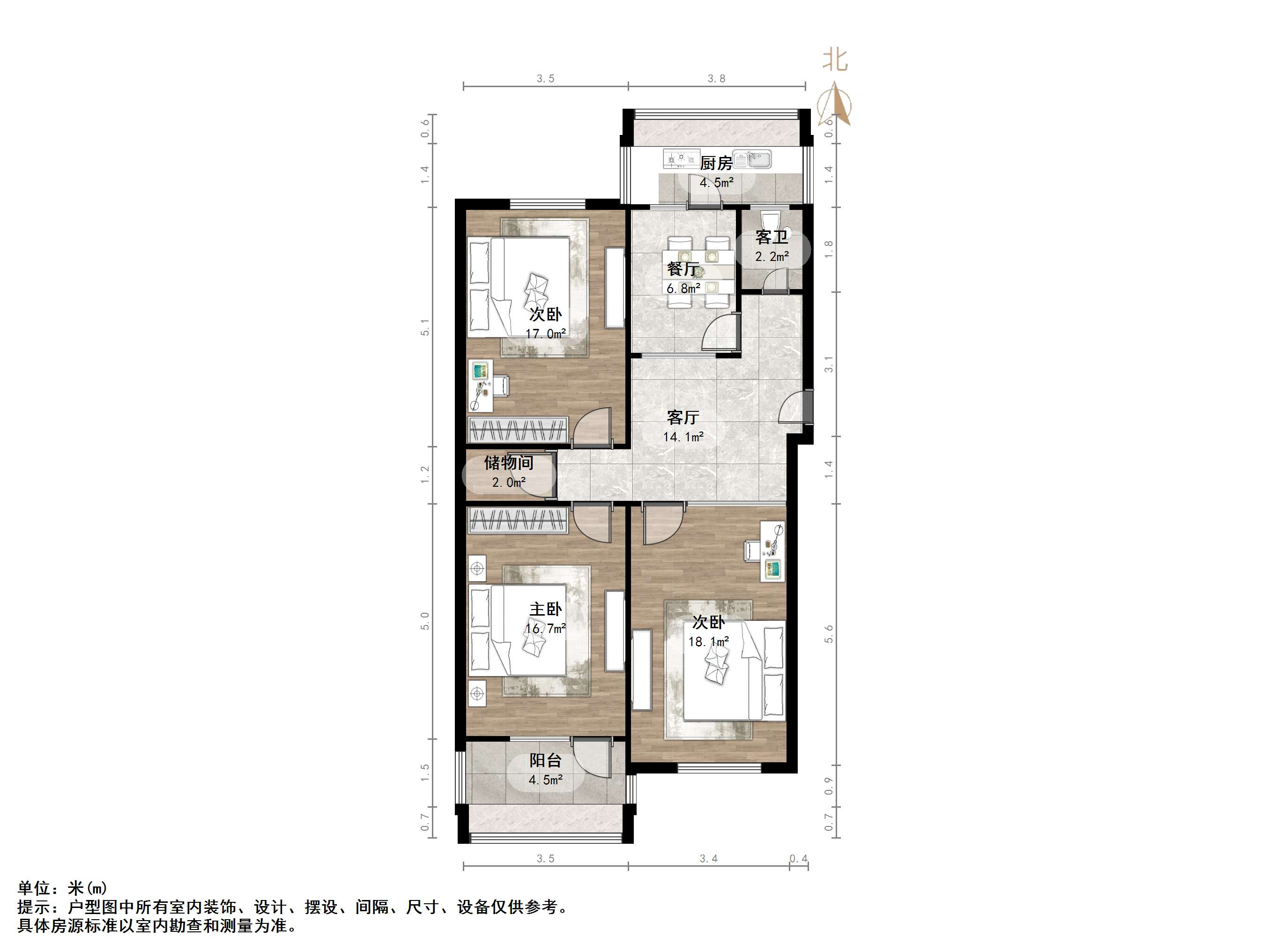 户型介绍:户型方正,南北通透,两室朝阳;布局合理,面积没有浪费;