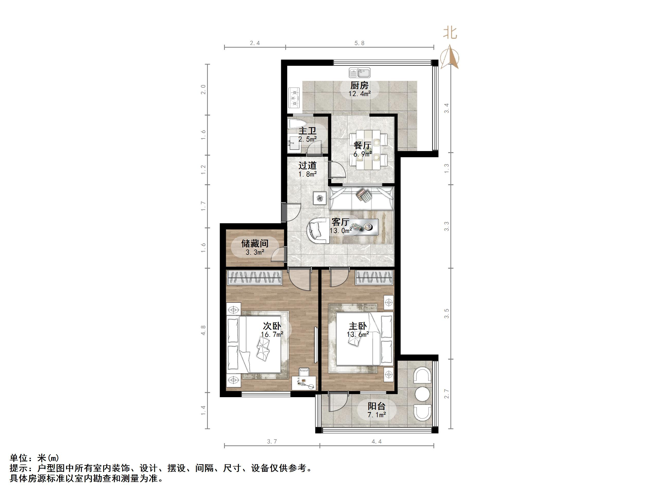 户型介绍:户型方正,南北通透,两室朝阳;布局合理,面积没有浪费;