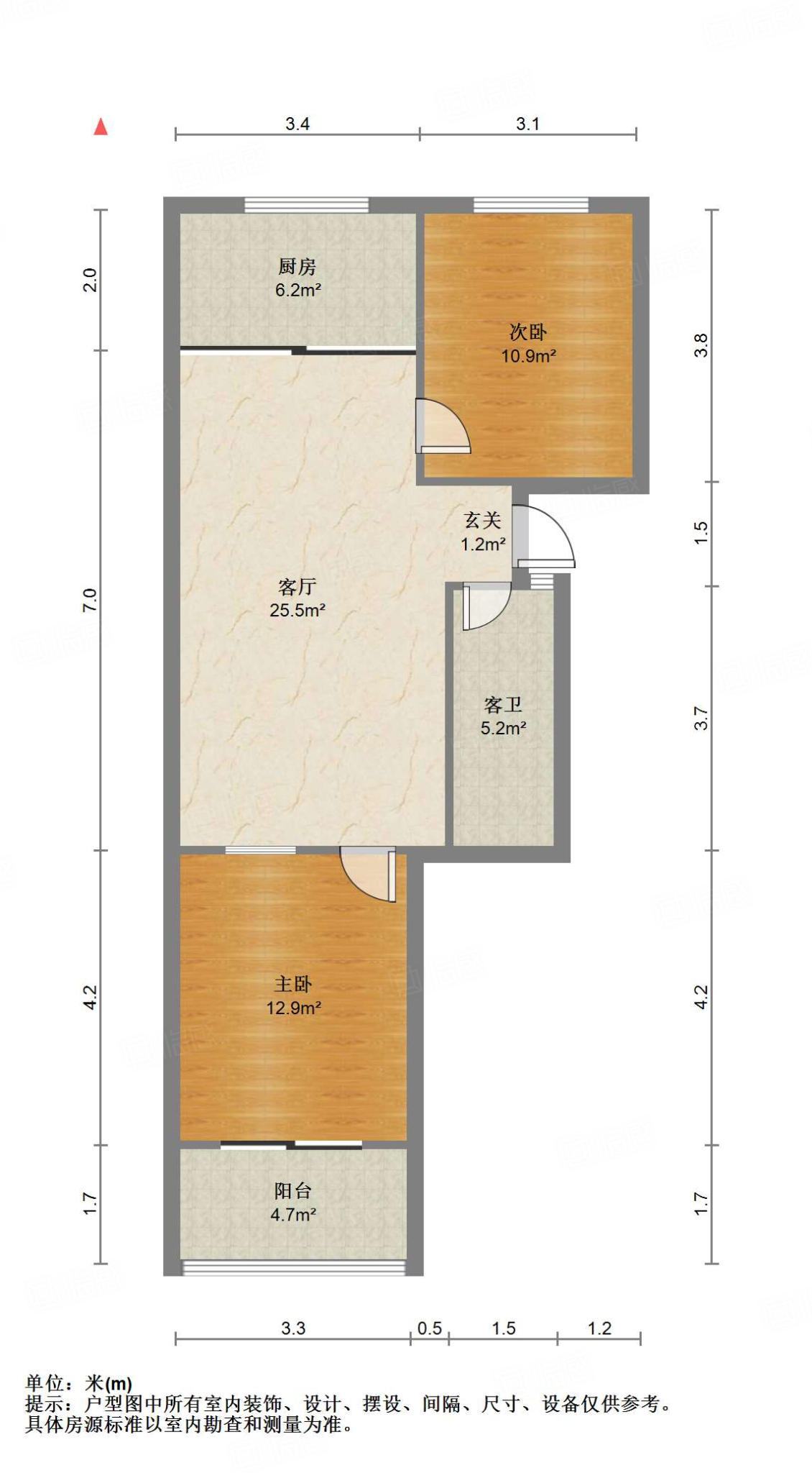 1、中间楼层,通透两居室