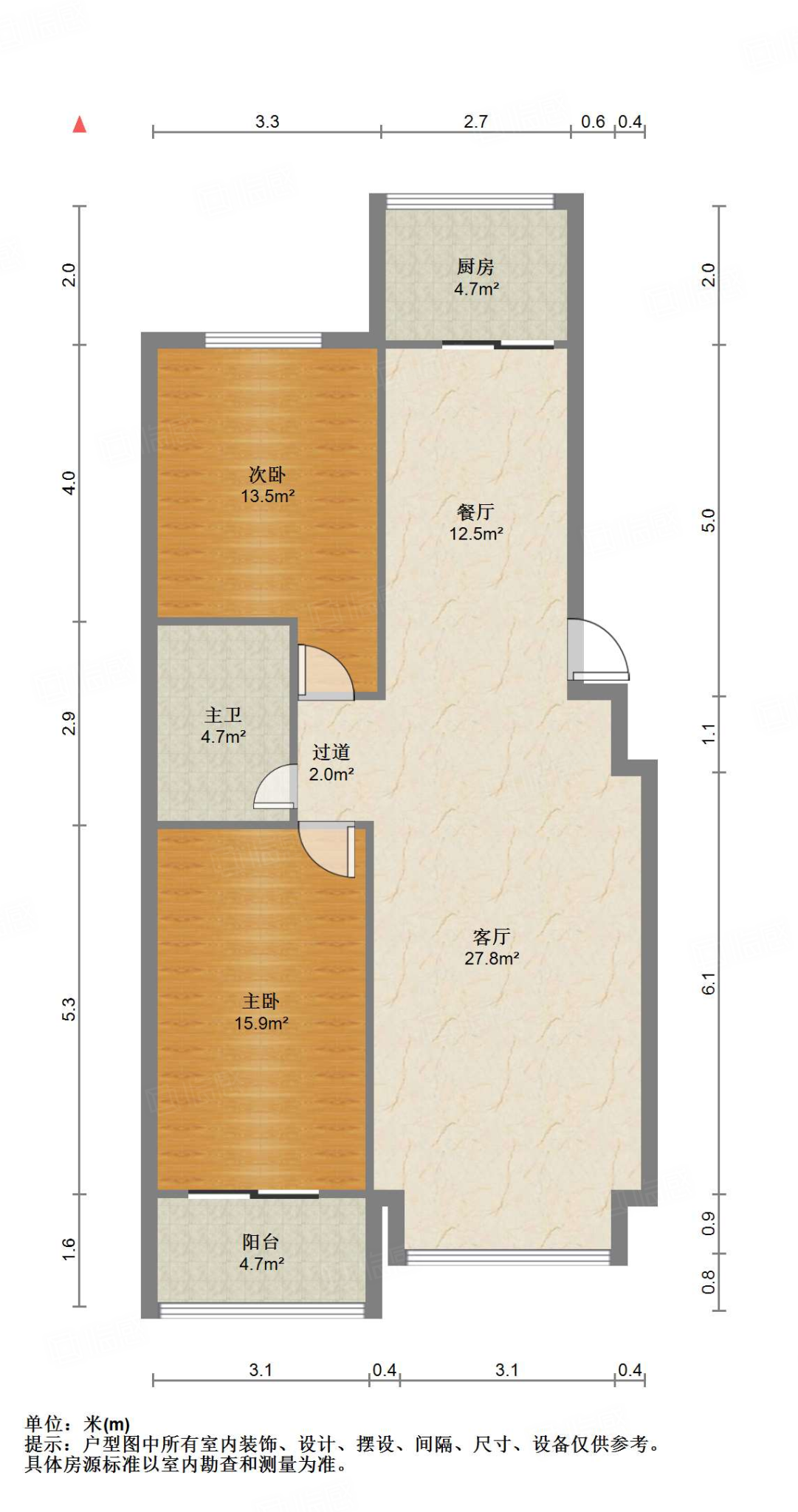 户型介绍:户型方正,南北通透,两室朝阳;布局合理,面积没有浪费;