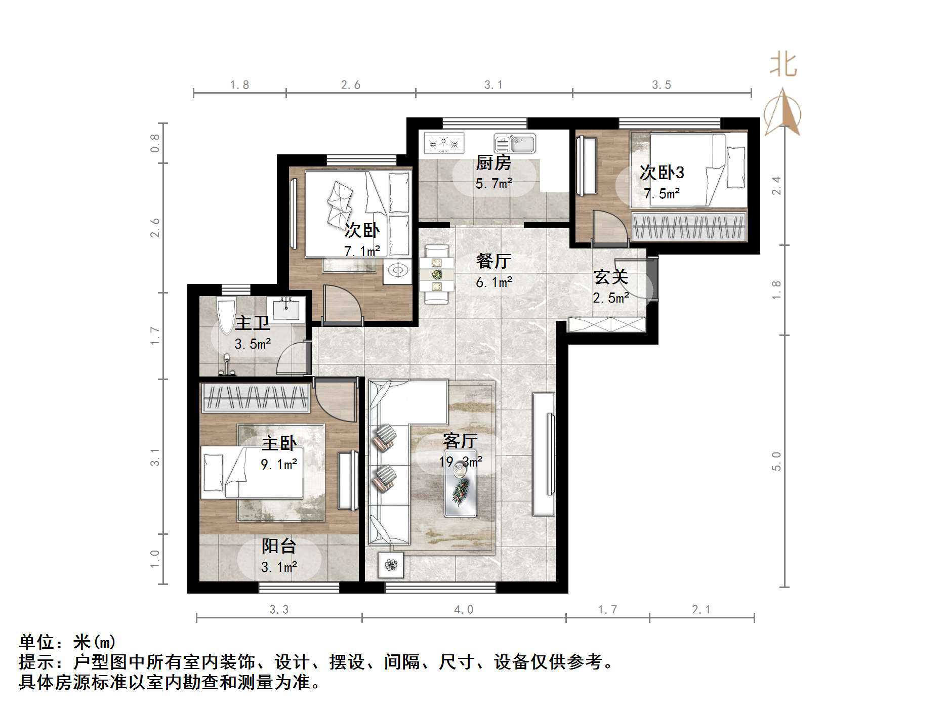 厅室3室2厅1卫1阳台