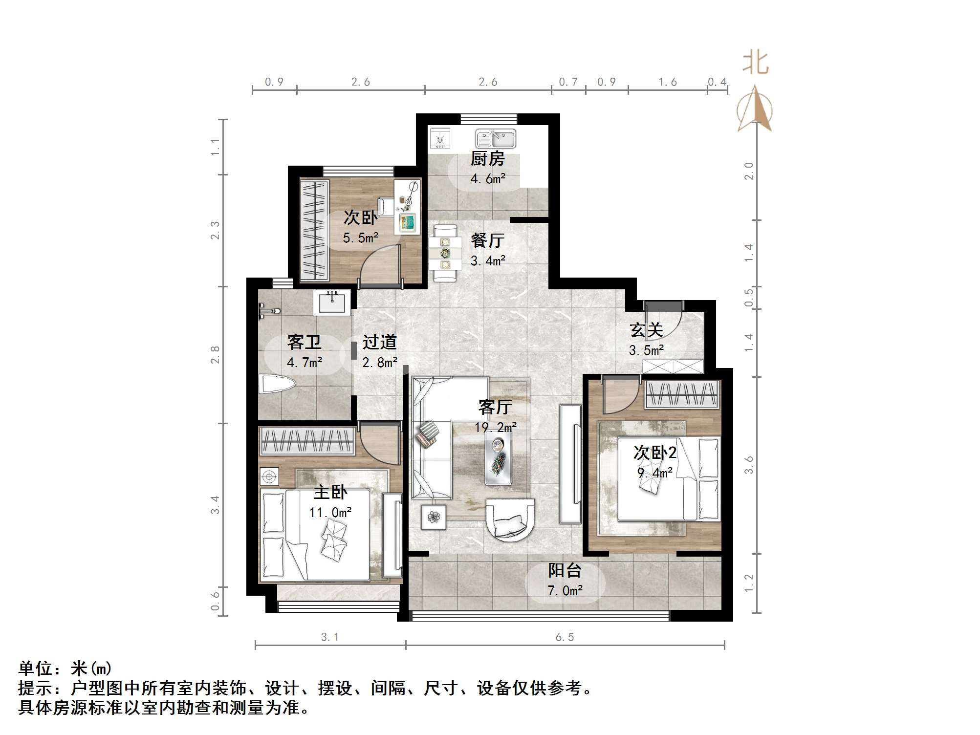 朝向南北 建筑面积98㎡