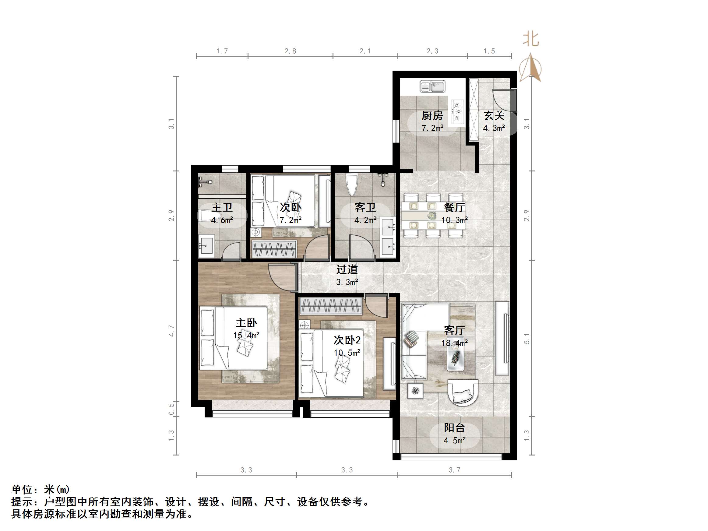 厅室3室2厅2卫1阳台