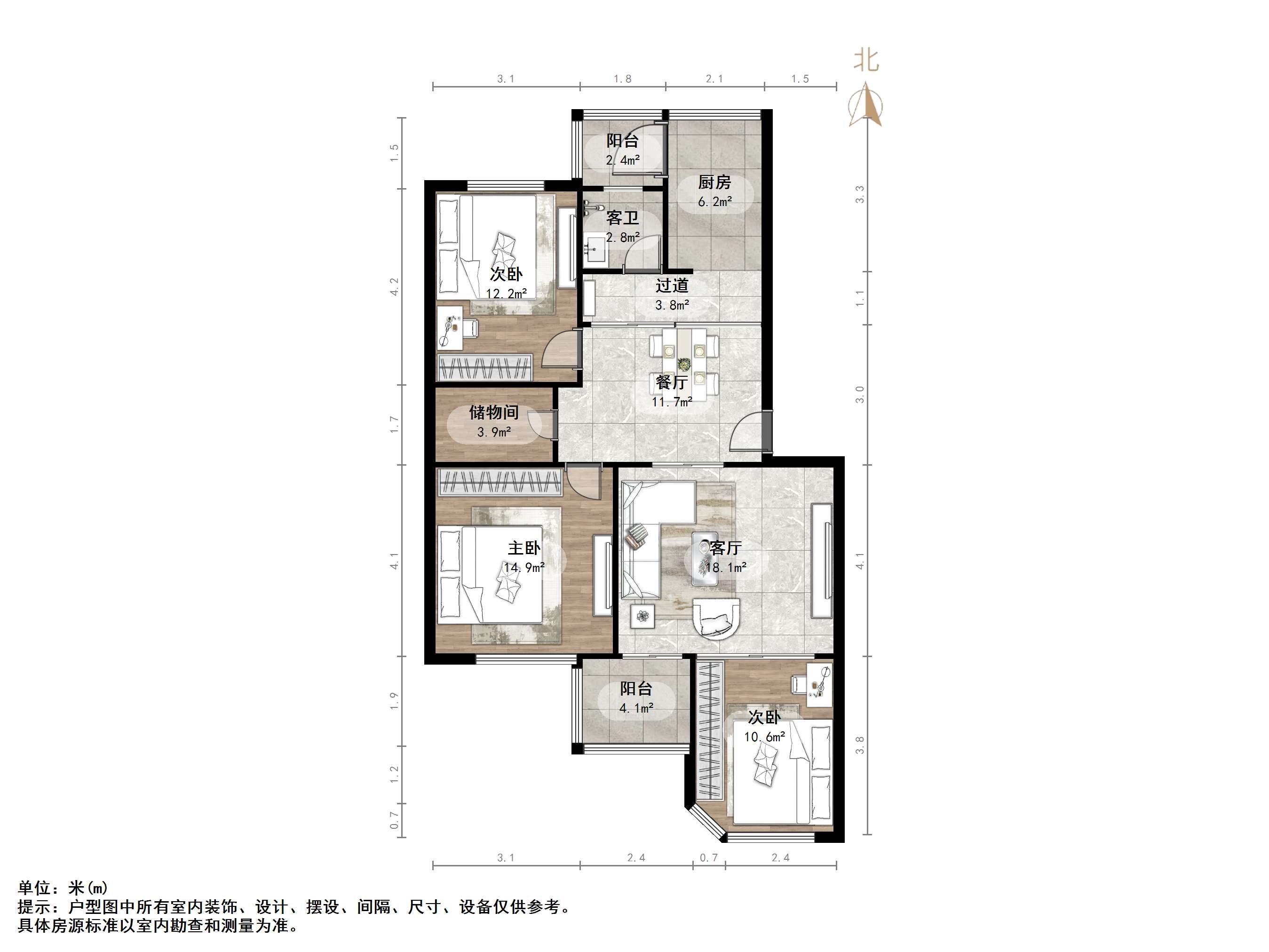 朝向南北 建筑面积100㎡