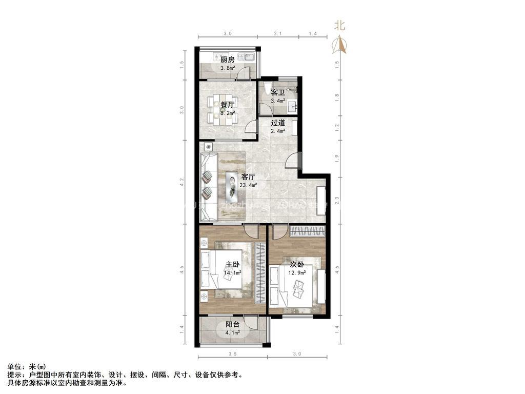 厅室2室2厅1卫1阳台